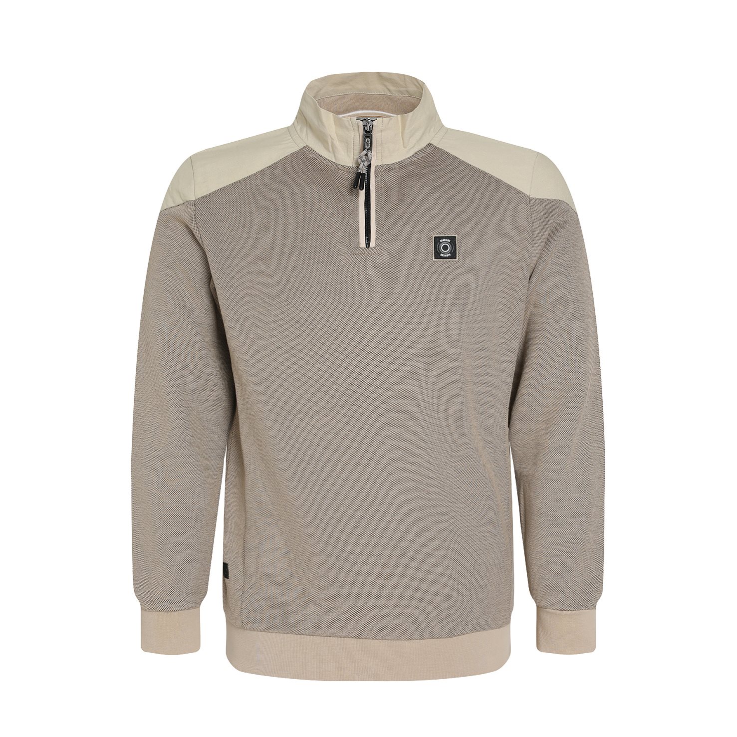 Deze sweater met kraag van het merk Gabbiano is gemêleerd van kleur. Op de borst van deze trui is het logo van Gabbiano afgebeeld. De trui heeft een kraag met ritssluiting en effen ecru vakken op de schouders. De boord aan de mouwen en onderzijde is ook effen van kleur.