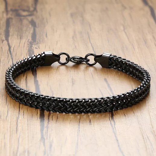 Leren Armband Zwart Vlecht