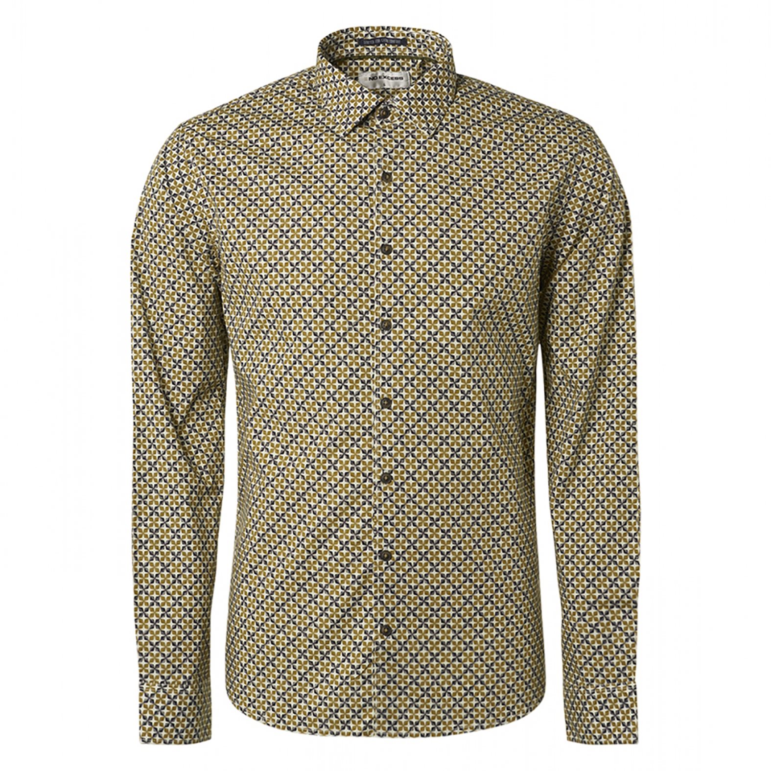Dit overhemd van het merk No Excess heeft een grafische print. Het shirt bevat de kleuren geel en blauw. Op de borst van dit shirt is het logo van No Excess afgebeeld. Het shirt heeft een kleine kent kraag. Het overhemd is gemaakt van katoen en heeft daardoor een hoog draagcomfort.