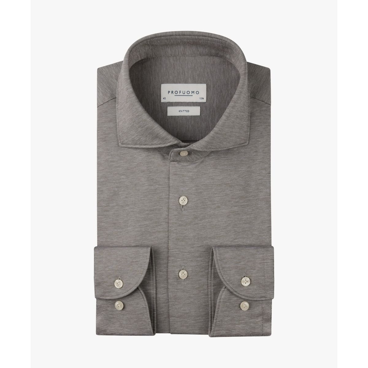Dit overhemd van Profuomo heeft een rustige, elegante uitstraling en is uitgevoerd in een verfijnde taupe tint. De fijne structuur in de stof geeft het geheel een subtiele diepte, waardoor het overhemd geschikt is voor zowel zakelijke als casual momenten. Een stijlvol en veelzijdig item dat gemakkelijk te combineren is met een pantalon of chino.