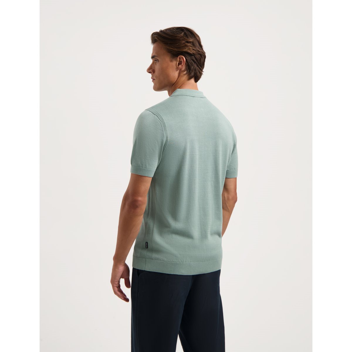 De zachte katoenkwaliteit draagt comfortabel en sluit mooi aan, terwijl de ribboorden zorgen voor een nette afwerking. Ideaal te combineren met een chino of jeans voor een moeiteloos verzorgde outfit.