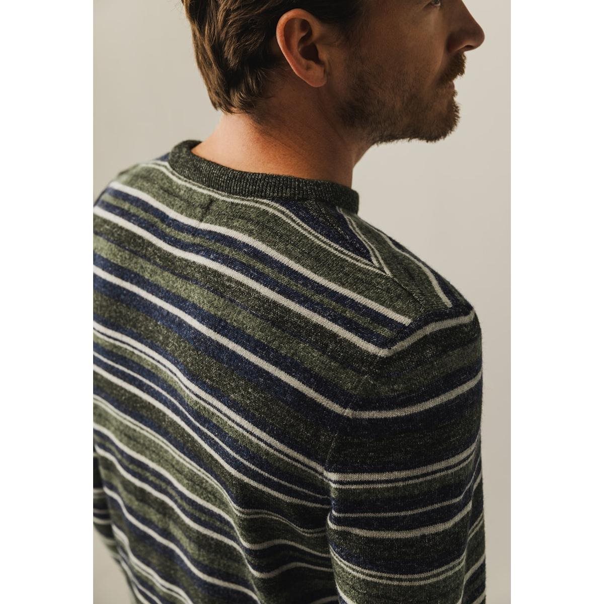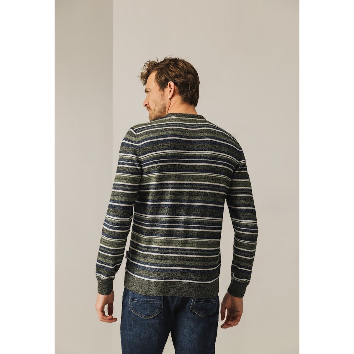 Trui van het merk State of Art in de kleur groen en blauw gestreept. De gebreide trui heeft een ronde hals.