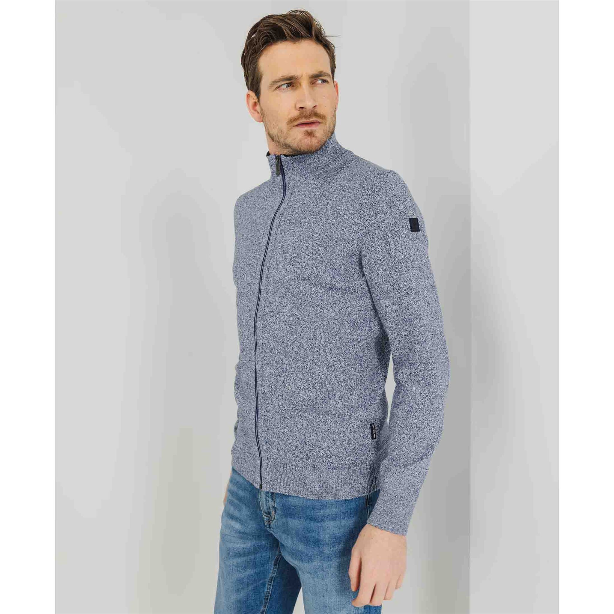 Vest van het merk State of Art in de kleur blauw. Het gebreide vest heeft een opstaande kraag en een ritssluiting.