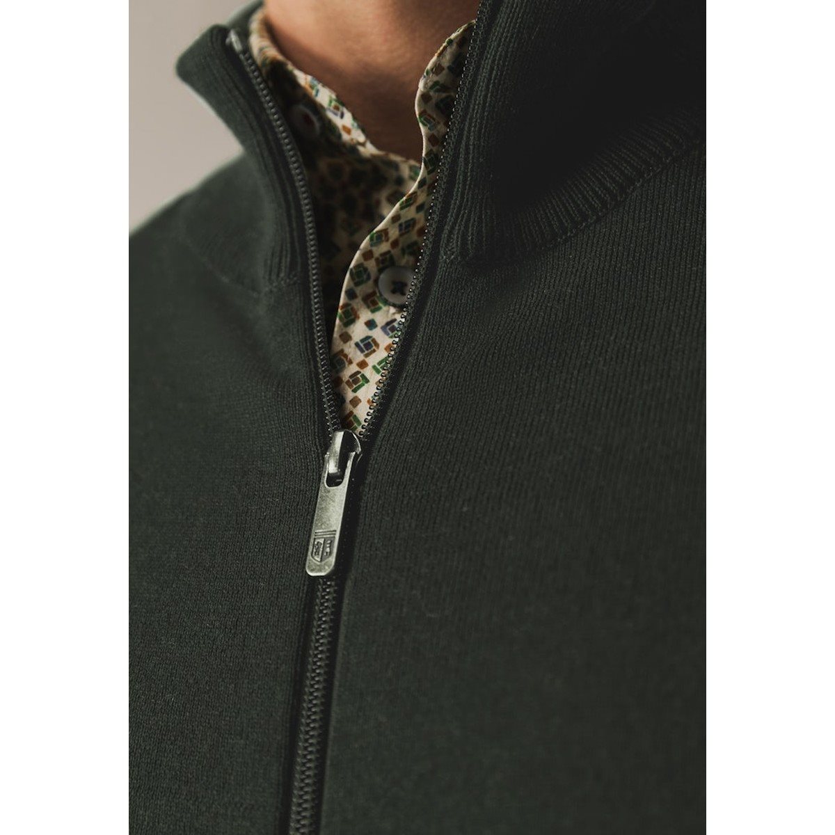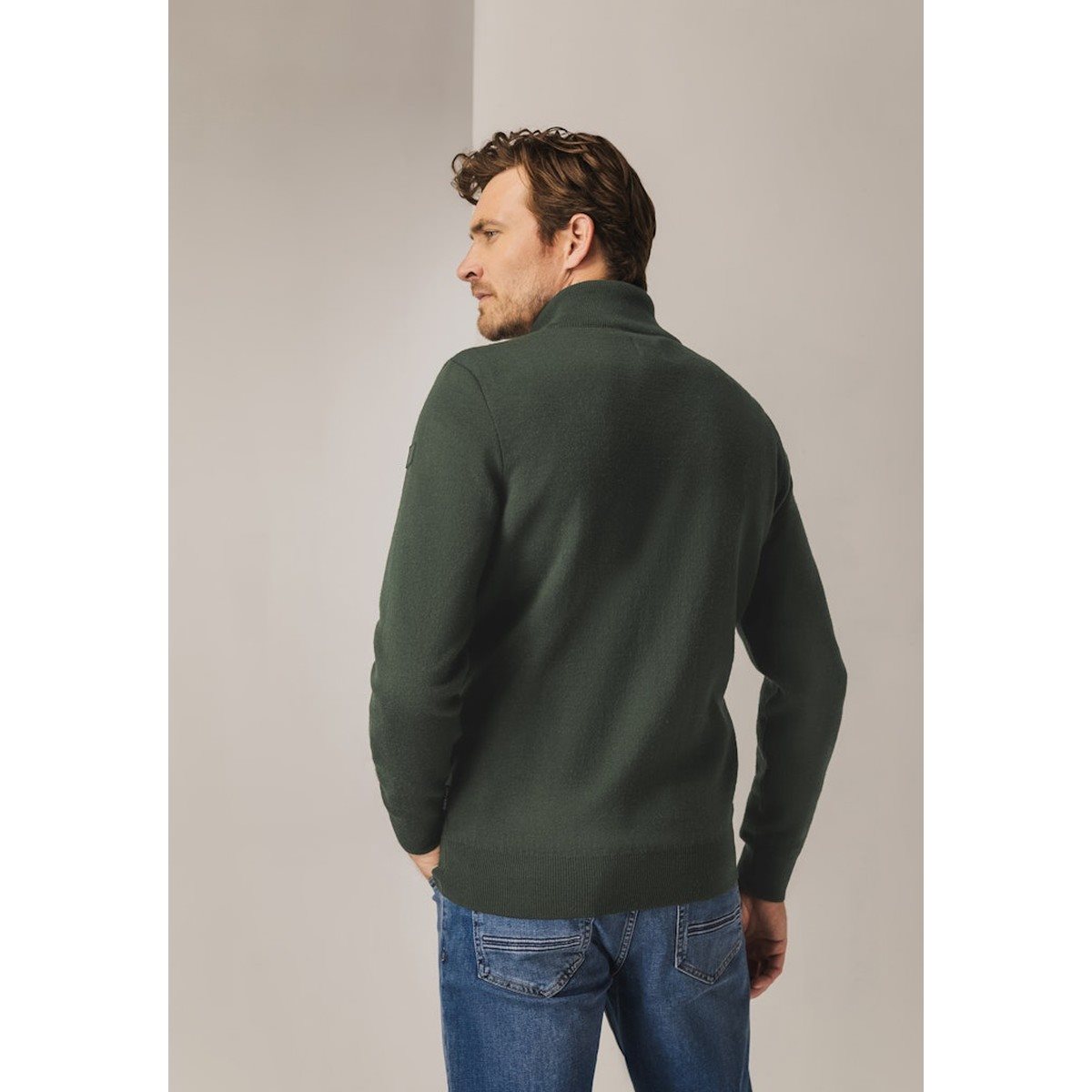 Vest van het merk State of Art in de kleur groen Het gebreide vest heeft een opstaande kraag en een ritssluiting.
