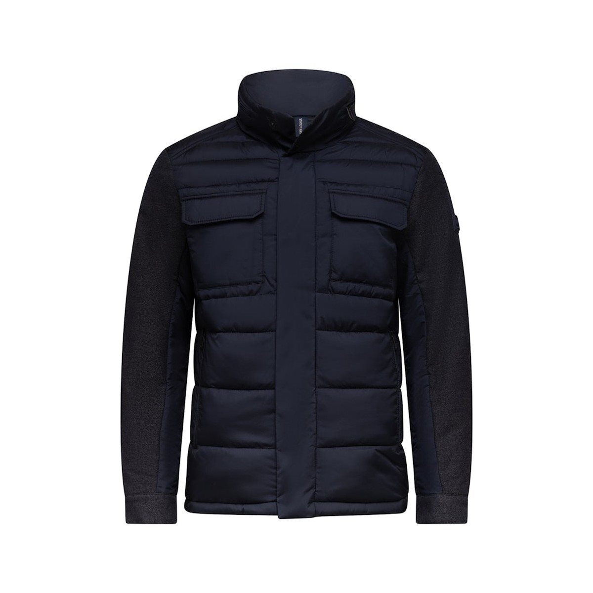 Deze luxe winterjas van State Of Art heeft een donker blauwe kleur en een opstaande kraag. De jas heeft binnenzakken met een ritssluiting. De zakken aan de buitenzijde zijn ook af te sluiten met ritsen. Warme jas voor de winter en is waterafstotend